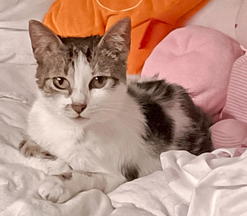 wurde adoptiert und lebt glücklich in Deutschland. Der Kater, Moro, hat die Welt leider verlassen müssen ohne