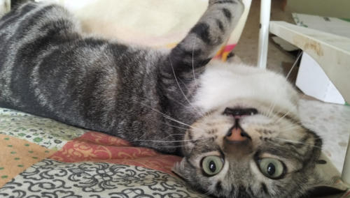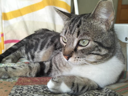 Dieser extrem soziale Kater ist etwa 2 Jahre alt (Stand April