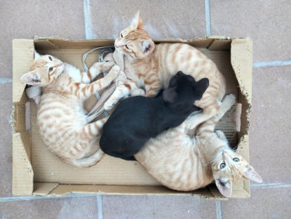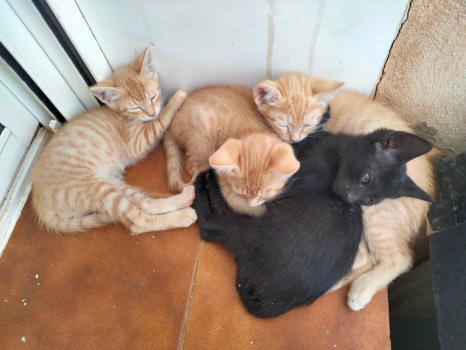 Mit seinen 3 Geschwisterchen und seiner Mama