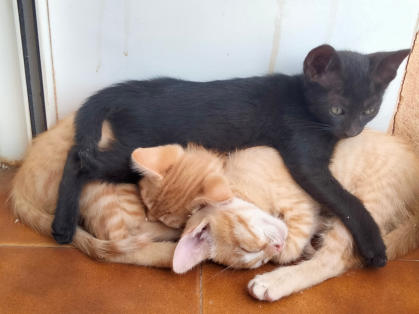 Mutter sicher hingebracht. 2 seiner orangefarbenen Brüder